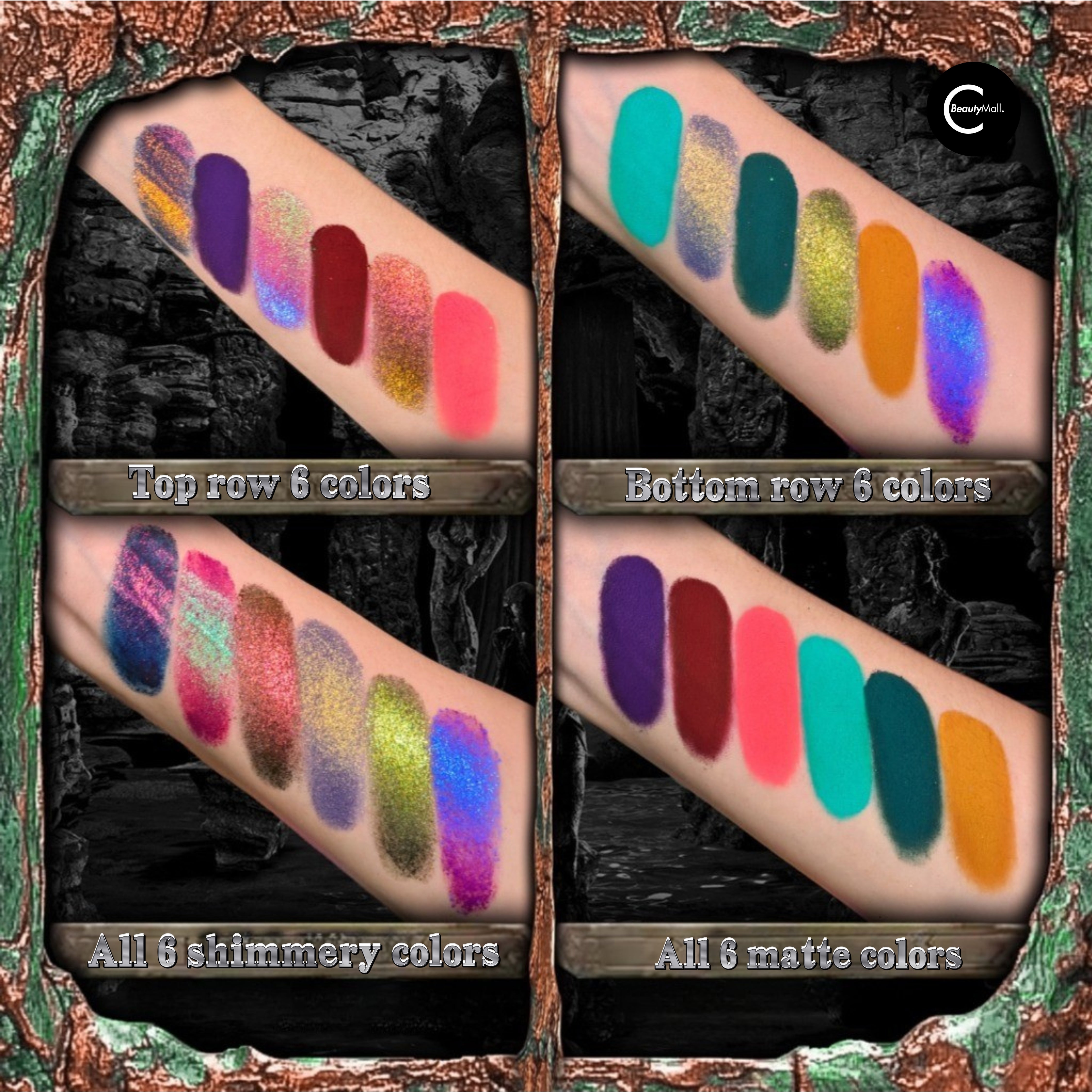 12 High-Performance Shades: A meticulously curated mix of 6 ultra-pigmented, velvety mattes and 6 transformative chameleon glitter shades.