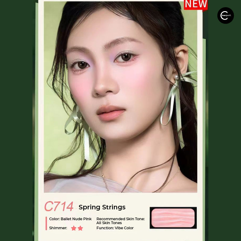 #C714 Spring Strings: Ballet nude pink—an atmosphere blush perfect for under-eye blush application. Suitable for all skin tones. Delivers a soft-glow powder mist finish—soft, ethereal, and endlessly elegant.
