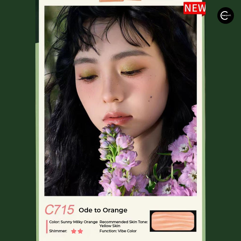#C715 Ode to Orange: Sunlight milk orange—an atmosphere blush ideal for sunburn blush styles. Specially suited for yellow skin tones. Delivers a soft-glow powder mist finish—warm, radiant, and effortlessly fresh.