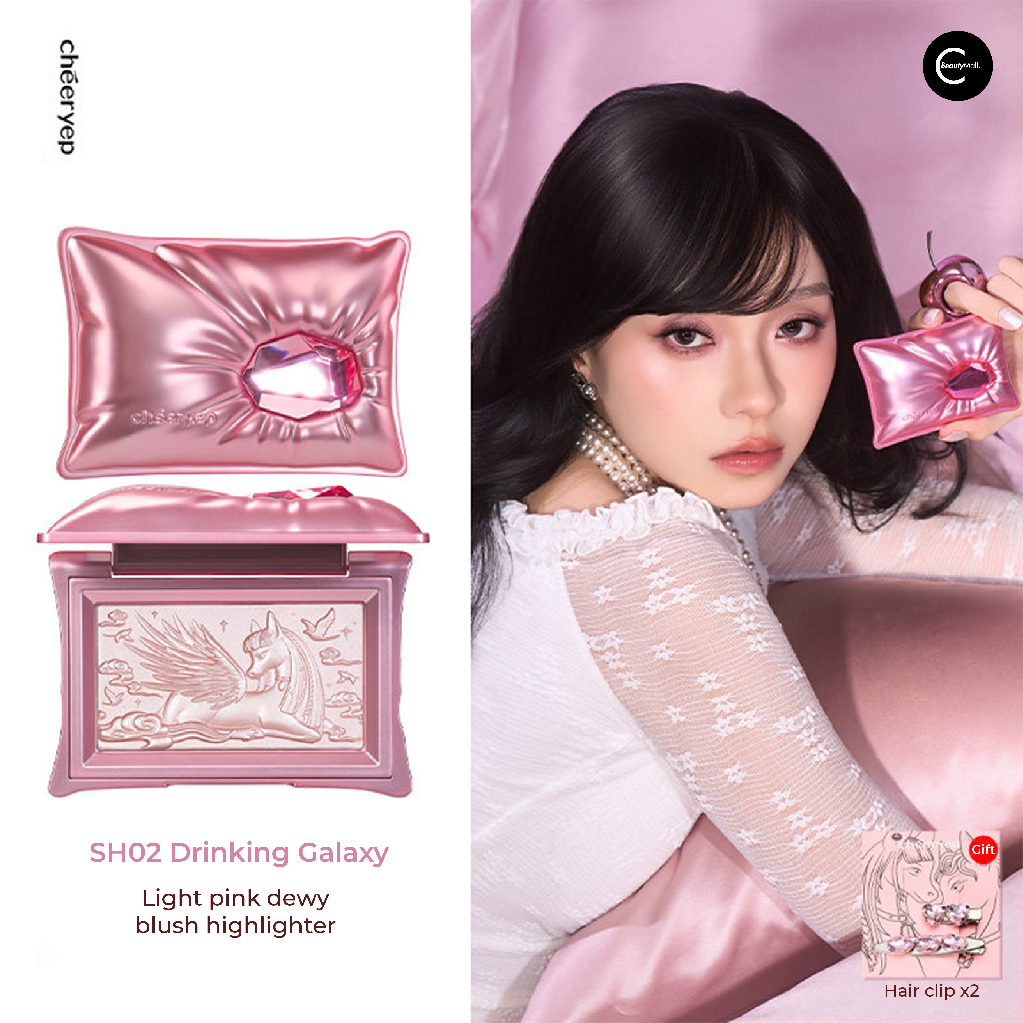 SH02 Drinking Galaxy: Pale pink water-glow blush highlighter—delicate as sipping starlight, creating ethereal flushed radiance.