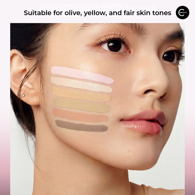 Cushion Concealer– High-coverage, high-stretch “milk skin” texture. Covers dark circles and acne marks without settling into lines.