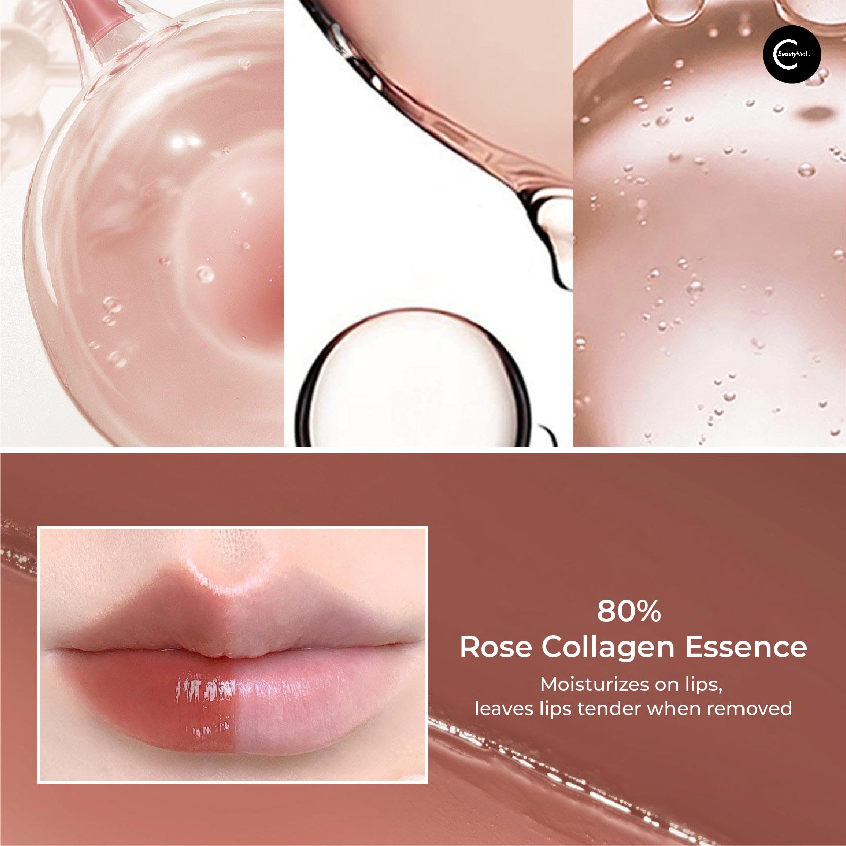Apply directly to lips, starting at the center and blending outward. For intensified water-gloss effect, layer additional coats. For softer, blurred finish, pat gently with fingertip after application. The rose collagen essence formula works best when applied to clean, dry lips—allow a moment for the moisturizing effect to absorb before layering.