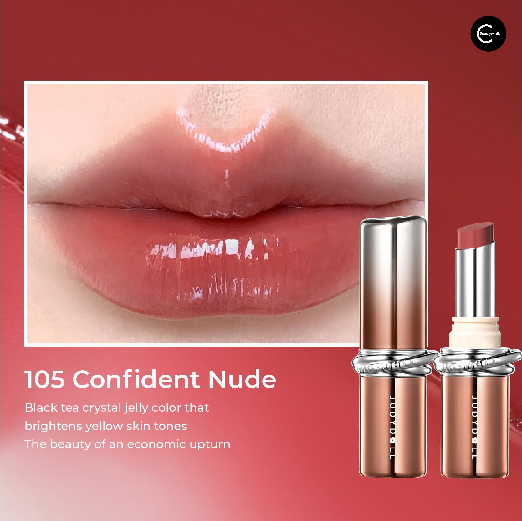 105 Confident Nude: Golden skin brightening black tea jelly color—the beauty of economic upward period. Optimistic, brightening, unapologetically radiant.