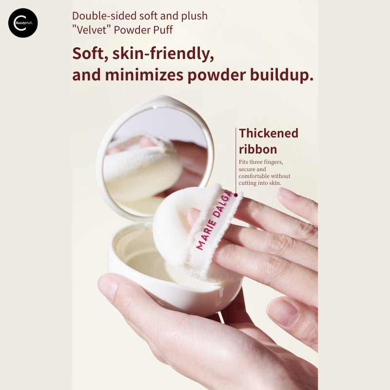 Included: Velvet powder puff with thickened ribbon for three-finger grip.